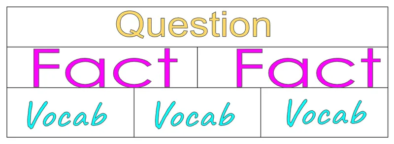 The children are asked to write one question, 2 facts and 3 words related to the unit.